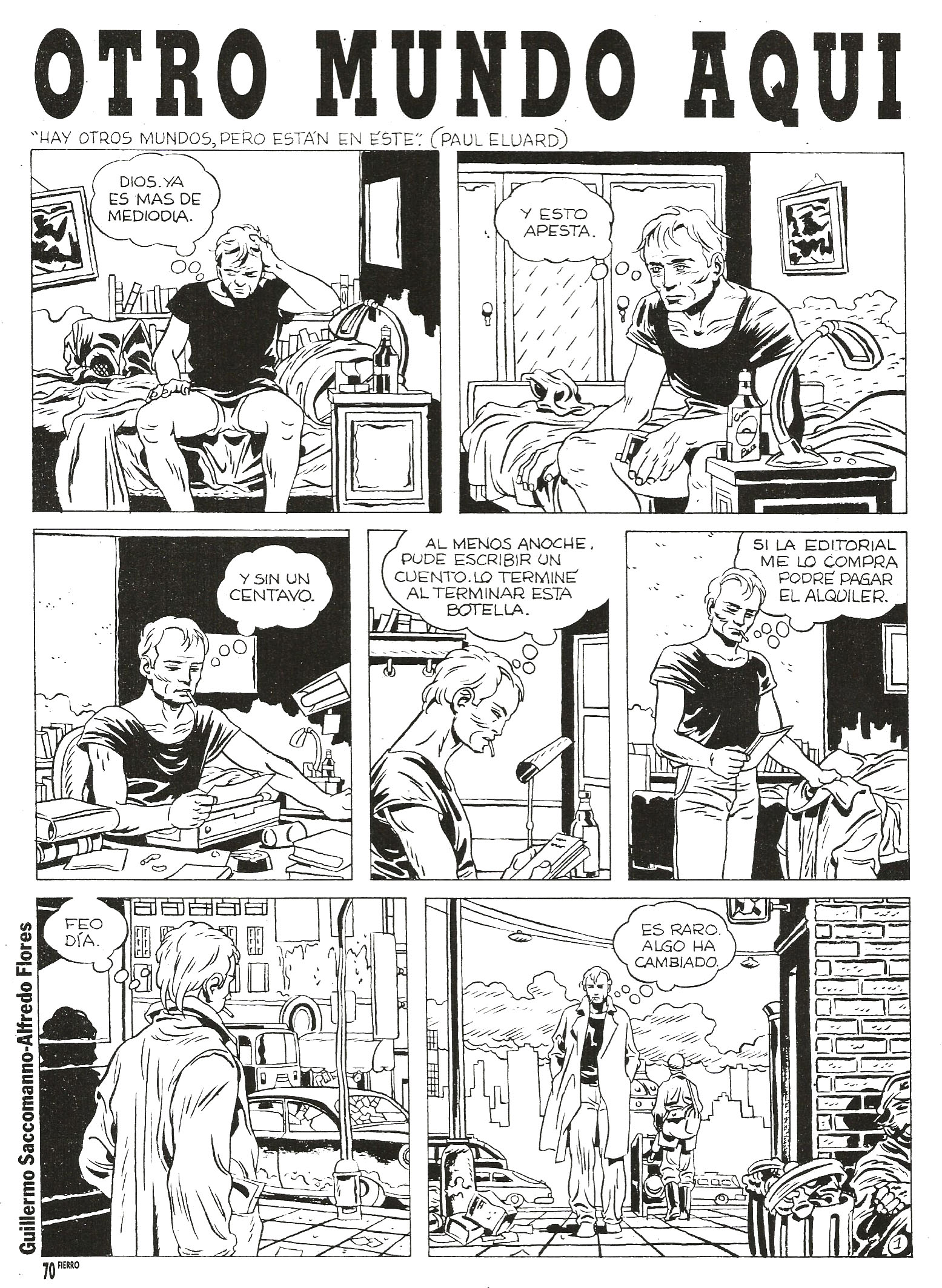Historieta unitaria publicada en 2 mitades en la revista Fierro, en los Nº 52 y 53 (Diciembre de 1988 y enero de 1989). Estaba escrita por Guillermo Saccomanno y dibujada por Alfredo Flores.